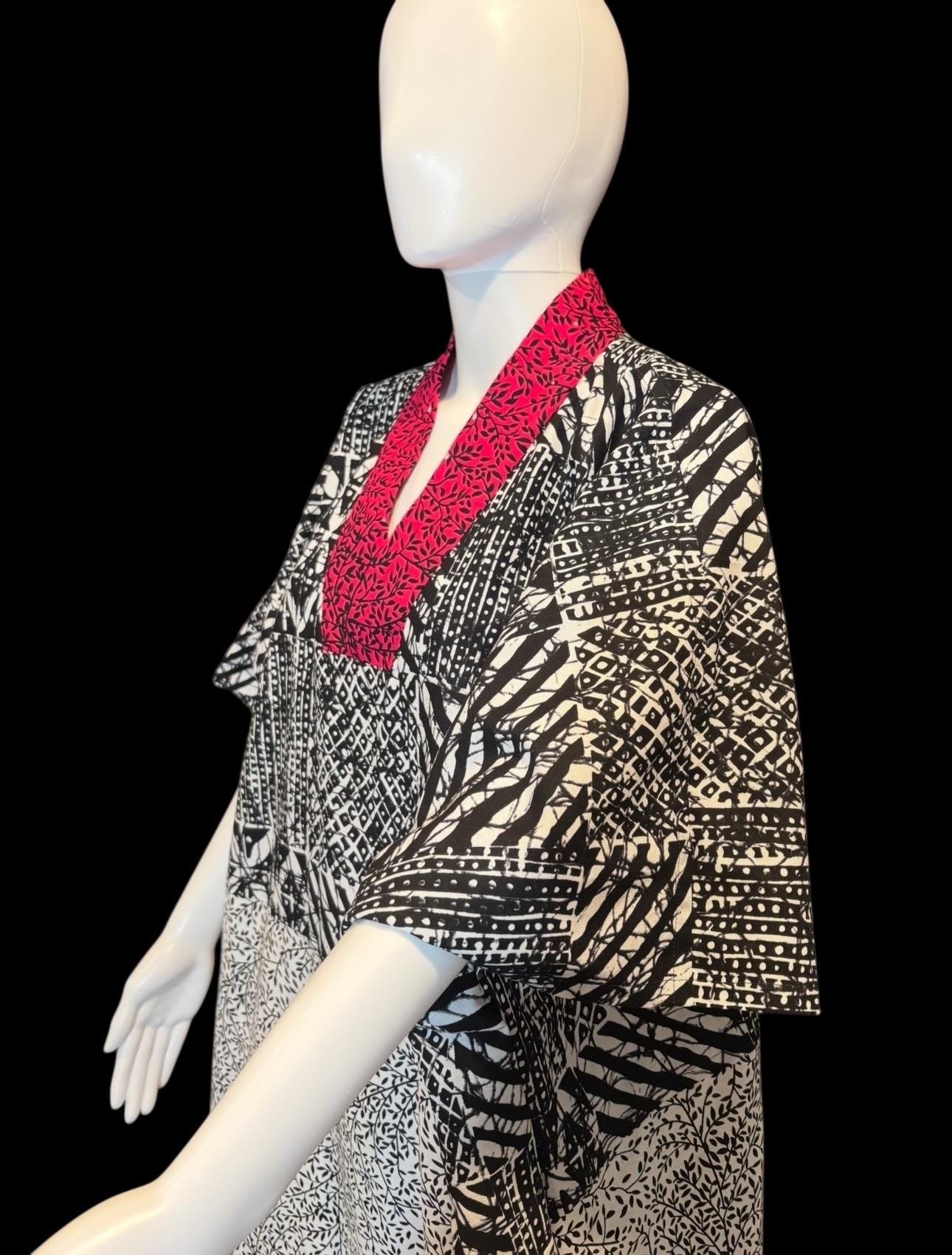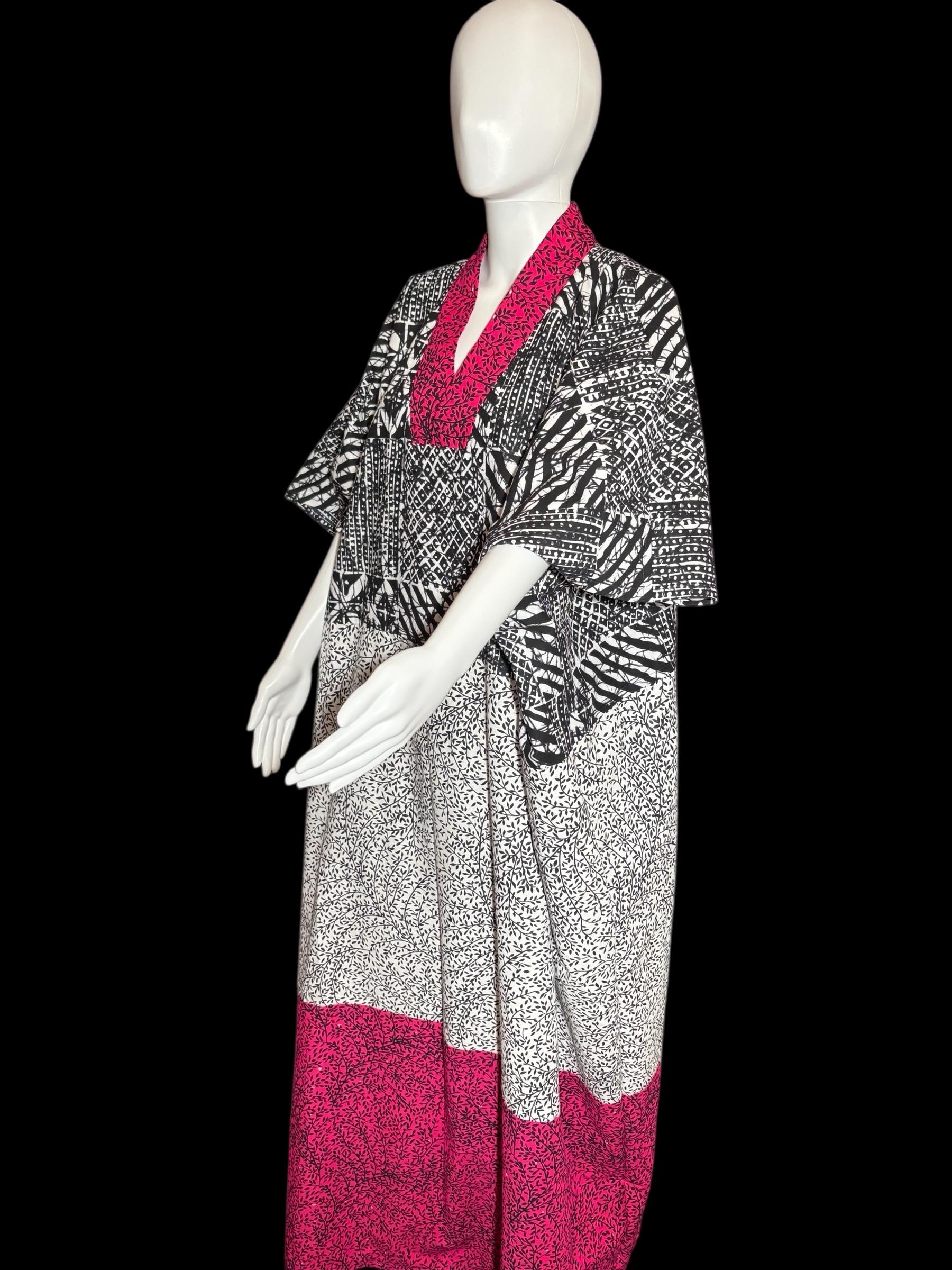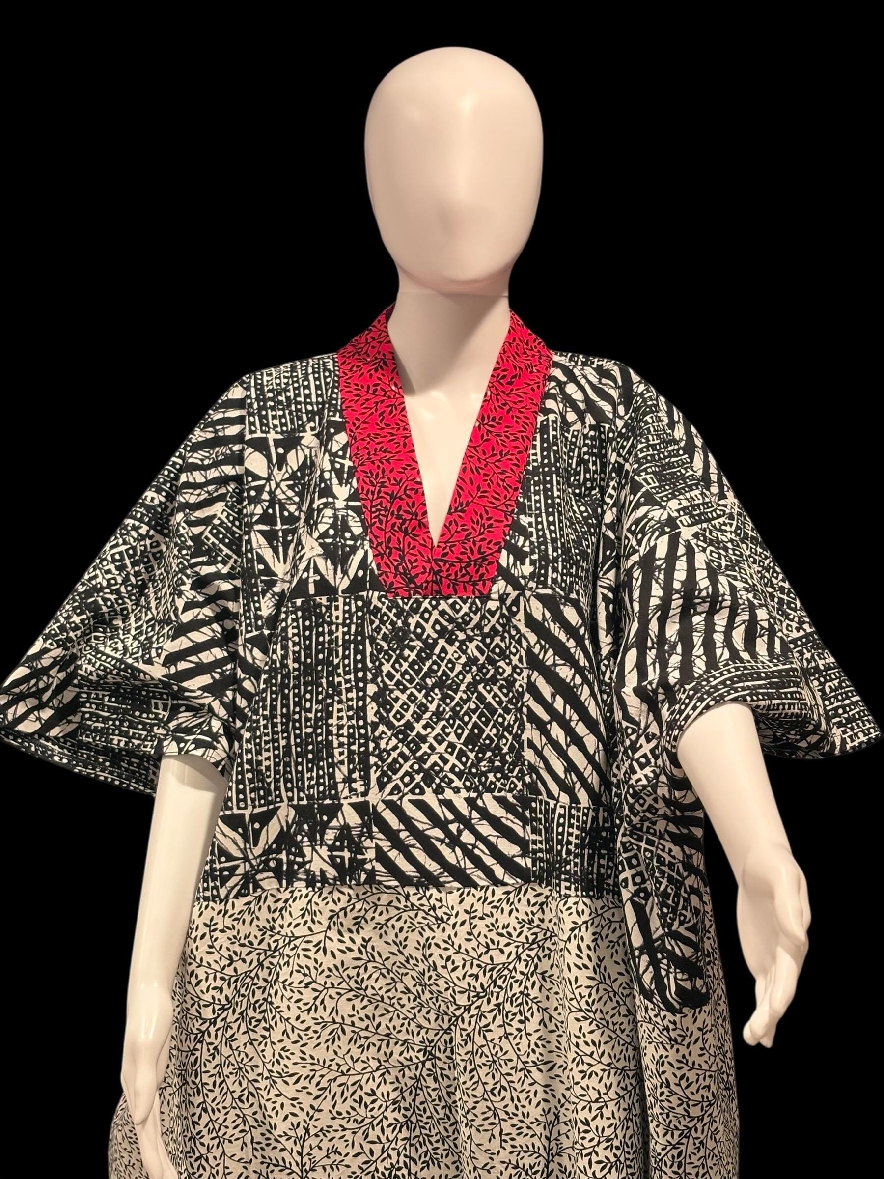 Patchwork Kaftan is a mix of 3 beautiful African Print fabrics. It is versatile & has a tie rope on the inside for a snug fit (if desired) to accentuate the waist and bust area only. This dress is perfect for all occasions and has pockets .
