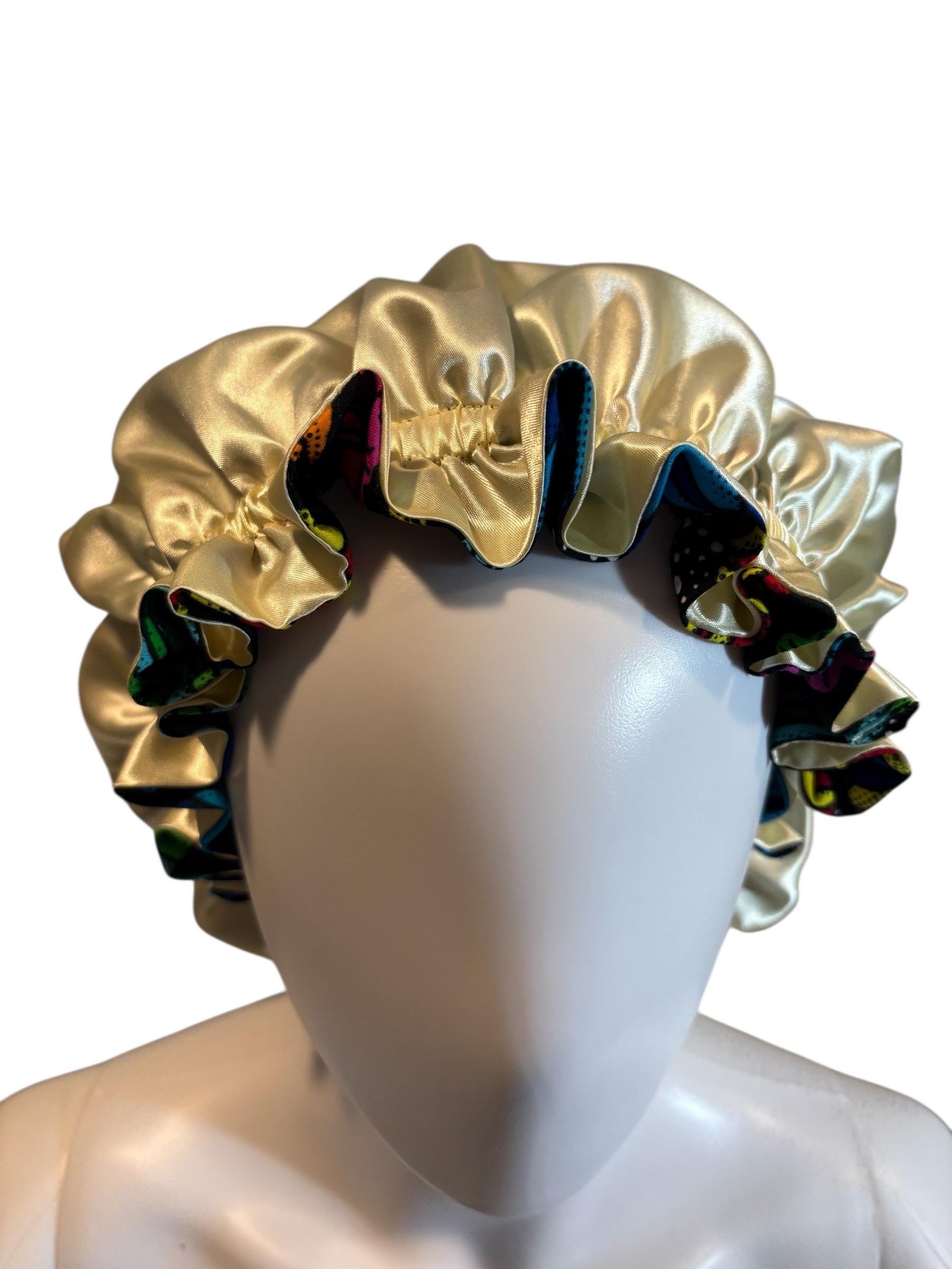 This gorgeous bonnet is handmade with love from a bold African print fabric delicately pieced with a feel good silky fabric for the maximum protection and comfort of your crown… it is reversible and absolutely catchy!!